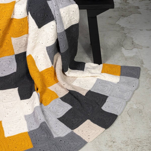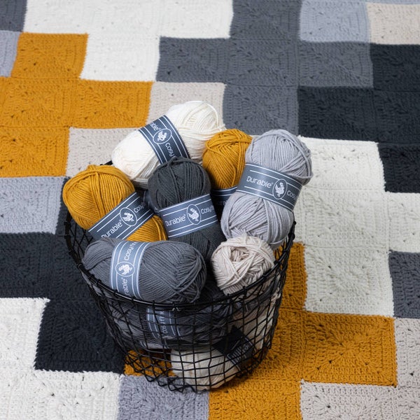 Durable Haakpakket Criss-Cross blanket Grey Yellow
